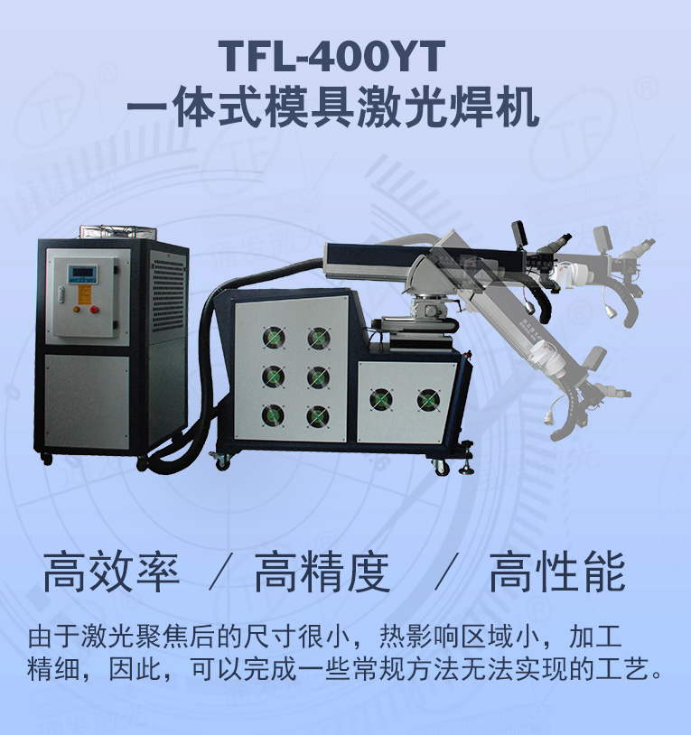 • 通發(fā)激光一體式模具激光焊機(jī)TFL-400YT是一款多種功能融合一體的新型模具激光焊接機(jī),針對(duì)特大型塑料模具激光焊、中型注塑模具激光燒焊、小型塑膠模具激光補(bǔ)焊、壓鑄模激光補(bǔ)焊